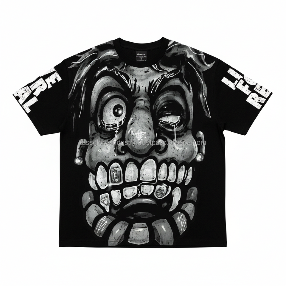 เสื้อยืดสตรีทแวร์ทรงโอเวอร์ไซส์ คุณภาพสูง เป็นมิตรกับสิ่งแวดล้อม เนื้อผ้าหนา พิมพ์ลายกราฟิกแบบสกรีน ผ้าคอตตอนหนา ตัดเย็บทรงครอป สำหรับผู้ชาย