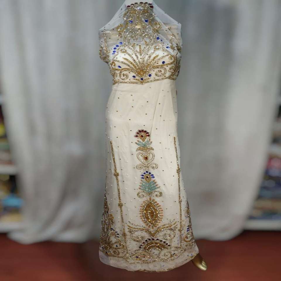 ผ้าจอร์จไนจีเรียคุณภาพสูง เป็นมิตรกับสิ่งแวดล้อม แฟชั่นล่าสุด ตกแต่งด้วยเลื่อม ลวดลายดอกไม้ประณีต งานปะติดปะต่อ 120 GSM สำหรับเด็กผู้หญิง