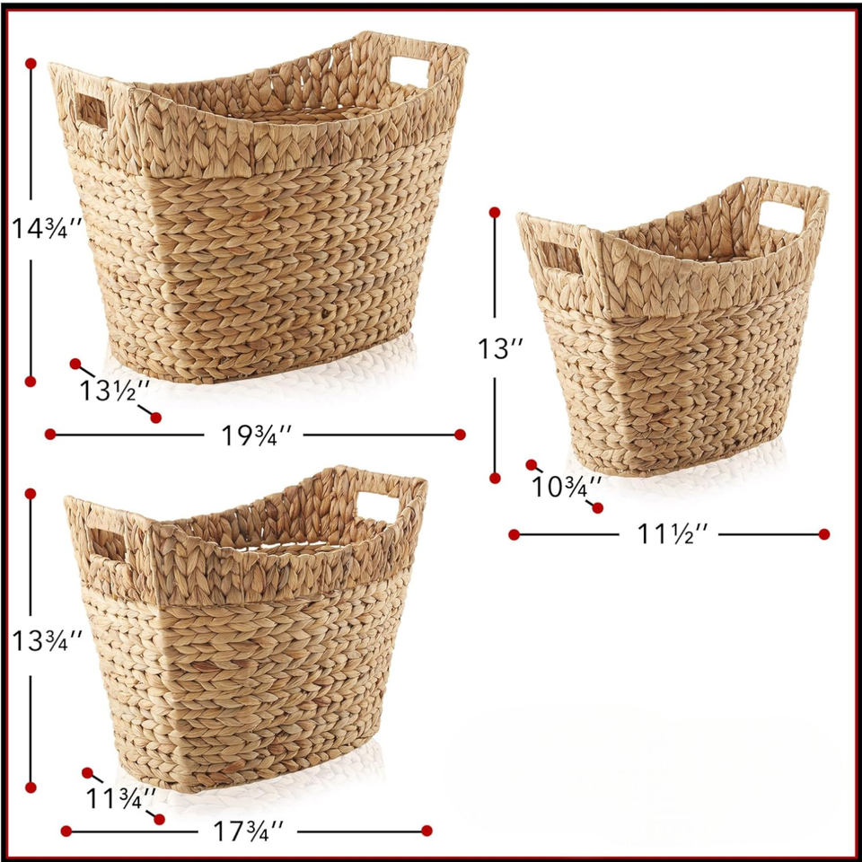 Product name:Set of 3 Dark Water Hyacinth Storage Baskets with Handle