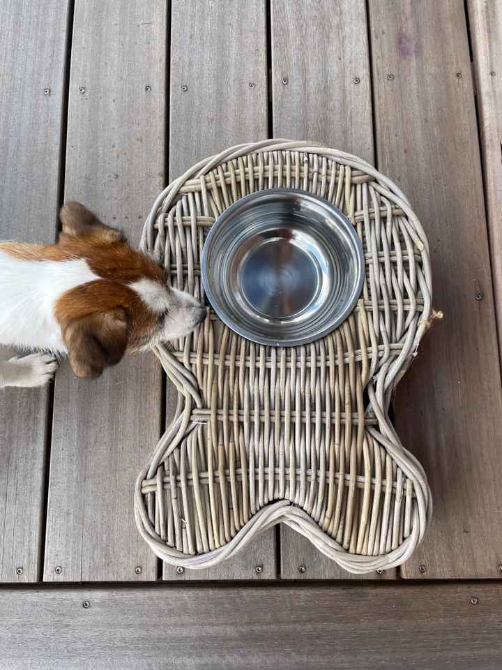 ชื่อผลิตภัณฑ์:ที่ใส่ชามสำหรับสัตว์เลี้ยงทำจากหวาย + ที่ใส่ชาม Inox