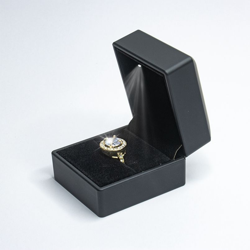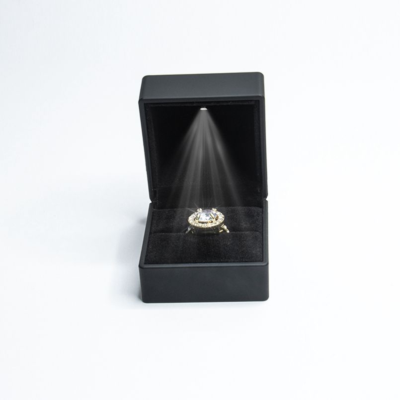 กล่องแหวนหมั้นทรงสี่เหลี่ยมผืนผ้าสี่เหลี่ยมผืนผ้าเป็นมิตรกับสิ่งแวดล้อมพร้อมไฟ LED และซับในกำมะหยี่สำหรับเก็บเครื่องประดับ