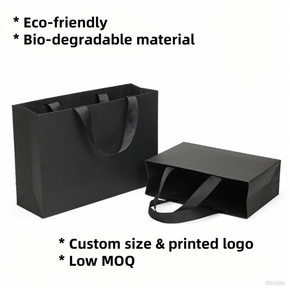 ถุงกระดาษช้อปปิ้งสีดำรีไซเคิลคุณภาพสูงเป็นมิตรกับสิ่งแวดล้อม พิมพ์ลายนูน พิมพ์สกรีนโลโก้ตามสั่ง บรรจุภัณฑ์สำหรับพิซซ่าและบะหมี่