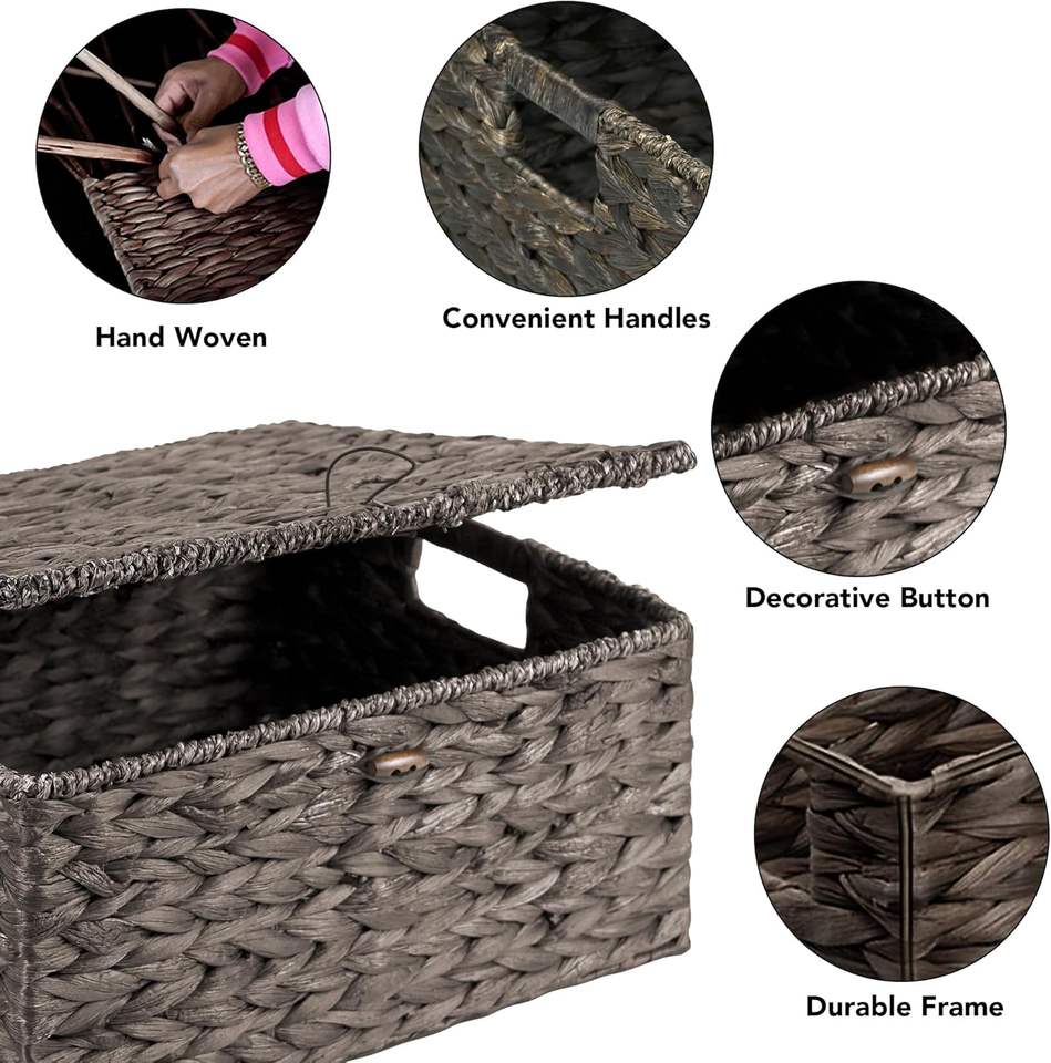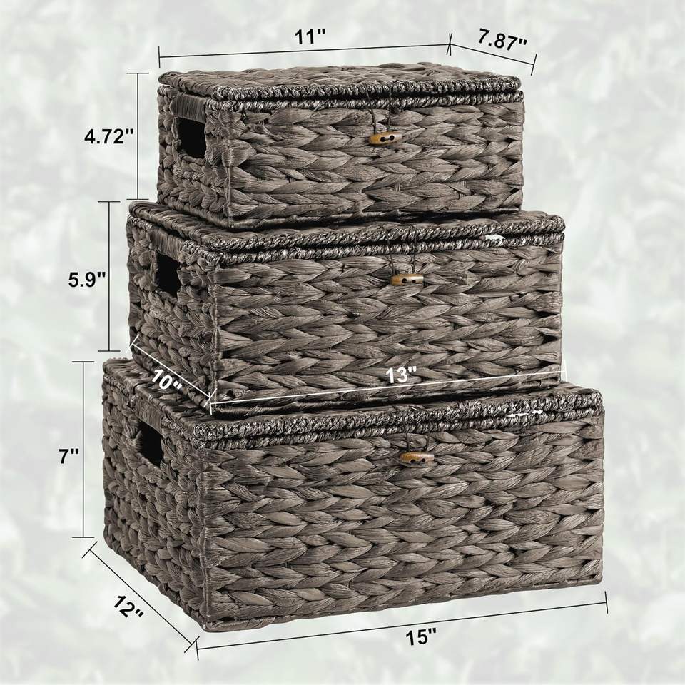 Product name:Water Hyacinth Set of 3 Woven Storage Baskets with Lid