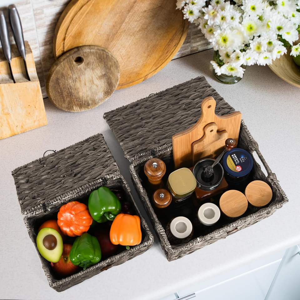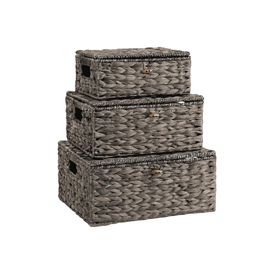 Water Hyacinth Set of 3 Woven Storage Baskets with Lid