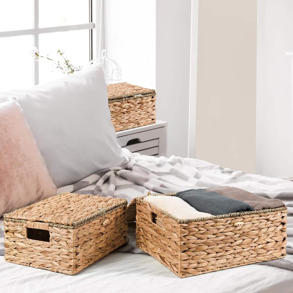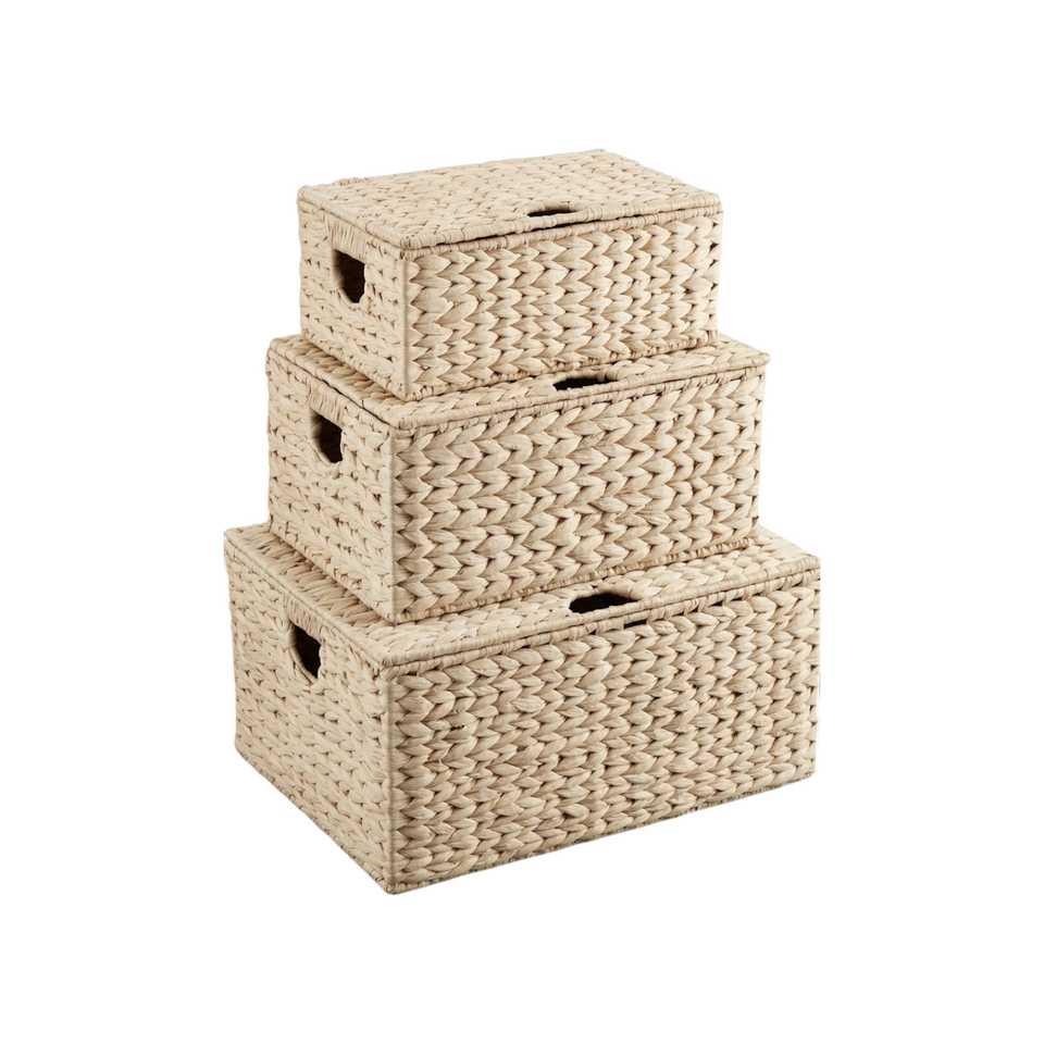 Water Hyacinth Set of 3 Woven Storage Baskets with Lid