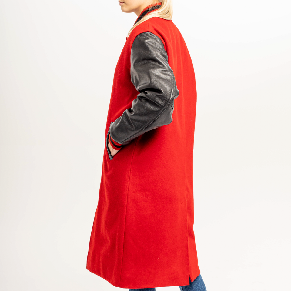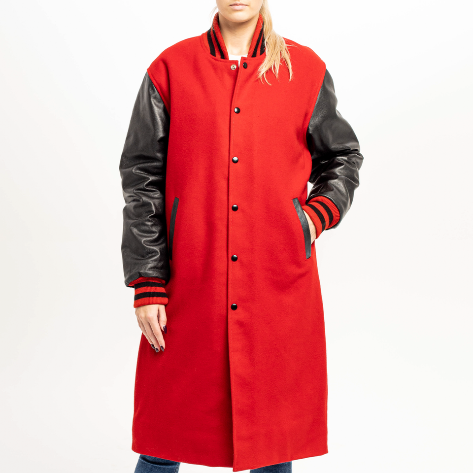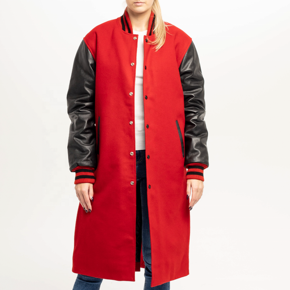 High Quality Eco-Friendly Scarlet Woolen Sleeves Women's College Coat Custom Made Long Length Winter Breathable Stand Collar