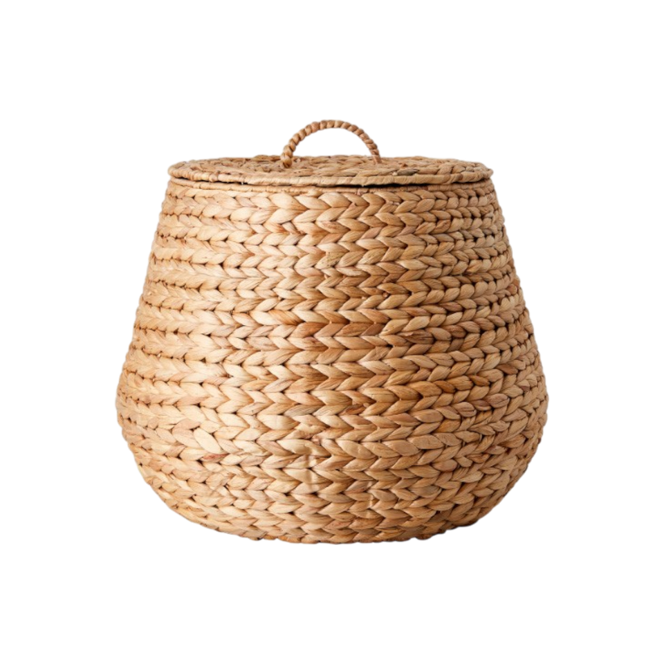 ตะกร้าเก็บของสานจากผักตบชวาคุณภาพสูง เป็นมิตรกับสิ่งแวดล้อม ดีไซน์เรียบง่าย สีสันปรับแต่งได้ ใช้งานได้หลากหลาย เหมาะสำหรับบ้าน โรงแรม/ร้านอาหาร