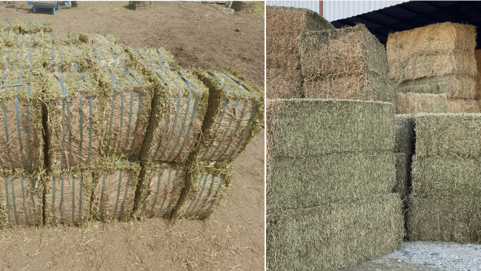 ก้อนฟางข้าวสาลีที่เป็นมิตรกับสิ่งแวดล้อมให้อาหารสัตว์สำหรับม้าและวัวใช้ในฟาร์ม