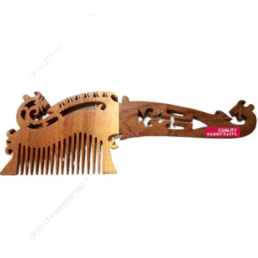 หวีไม้งานฝีมืออินเดียสำหรับดูแลผมและเคราดีไซน์ช้างทำจากไม้เป็นมิตรกับสิ่งแวดล้อม