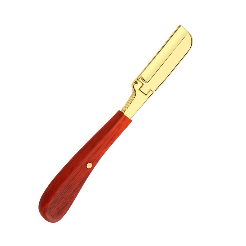 มีดโกนหนวดแบบใบมีดเดี่ยวคุณภาพสูง ด้ามไม้เป็นมิตรกับสิ่งแวดล้อม ตกแต่งด้วยทองคำ สำหรับผู้ชาย