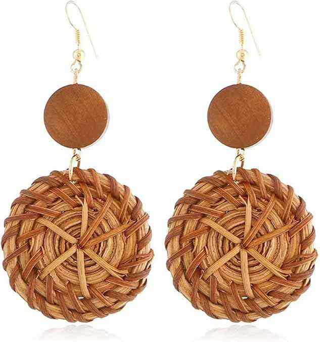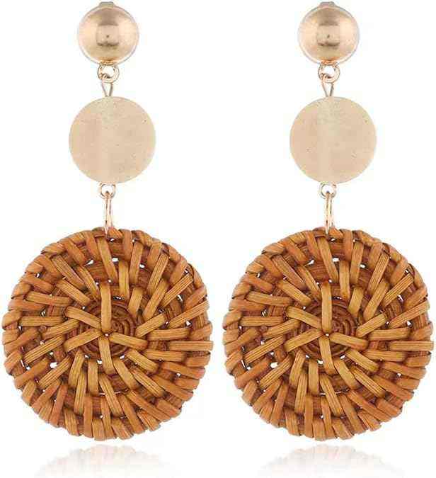 ต่างหูห่วงหวายทรงเรขาคณิตสำหรับผู้หญิงทำจากเวียดนามน้ำหนักเบาเป็นมิตรกับสิ่งแวดล้อม