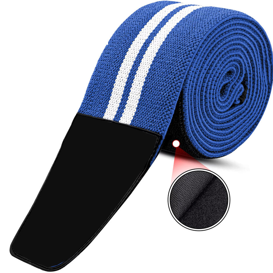 ผ้าพันเข่าคุณภาพสูงสำหรับยกน้ำหนักและฝึกซ้อมในยิม ระบายอากาศได้ดี ปรับขนาดได้ ป้องกันการบาดเจ็บ รองรับเข่า พร้อมโลโก้สั่งทำ