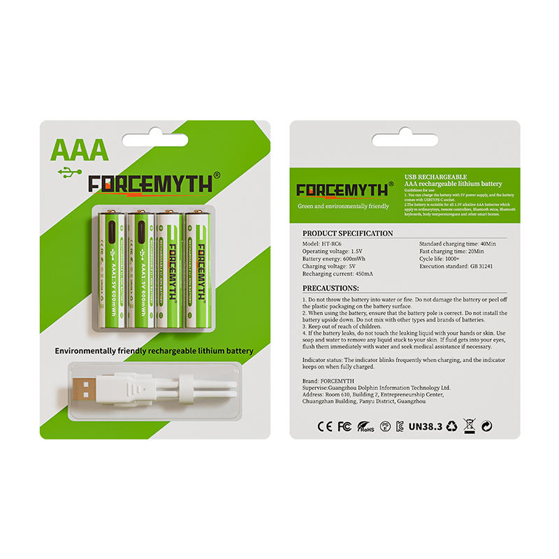 AAA Type-C USB Li-ion Rechargeable Batteryหมายเลขรุ่น