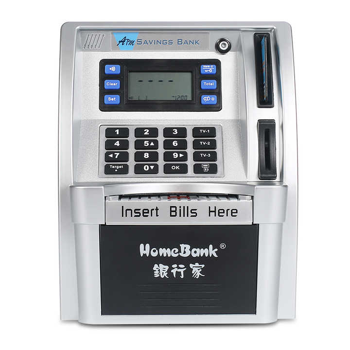 กระปุกออมสินอิเล็กทรอนิกส์ ATM กล่องใส่เงินพลาสติกทรงสี่เหลี่ยมพร้อมบัตรผู้ใช้สำหรับเป็นของขวัญและเงินออม