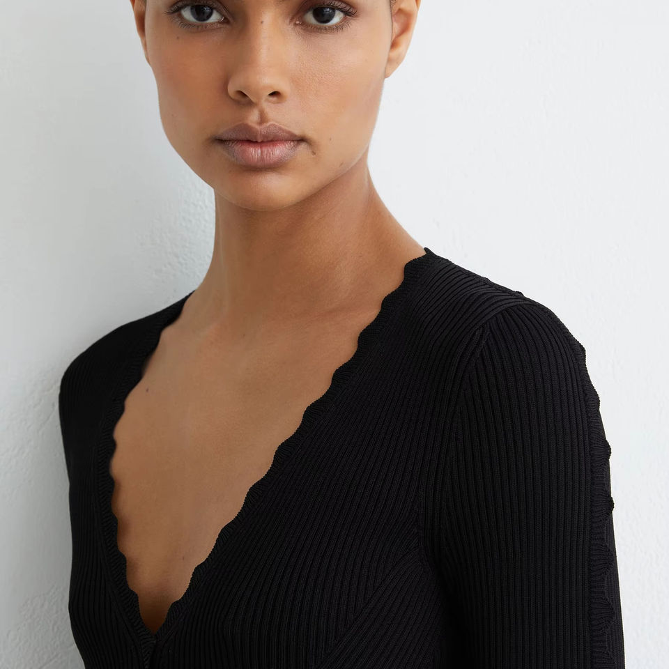 V-คอขอบเสื้อผู้หญิงตอนหน้าอก