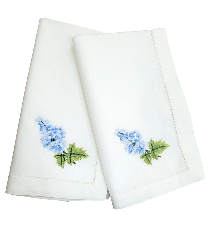ผ้าเช็ดปากผ้าฝ้ายสีขาวปักลายดอกไม้สีฟ้าผ้าปูโต๊ะผ้าฝ้ายสีขาวสำหรับงานแต่งงานบ้านโรงแรมงานอีเว้นท์