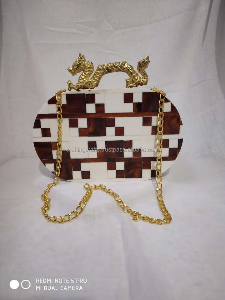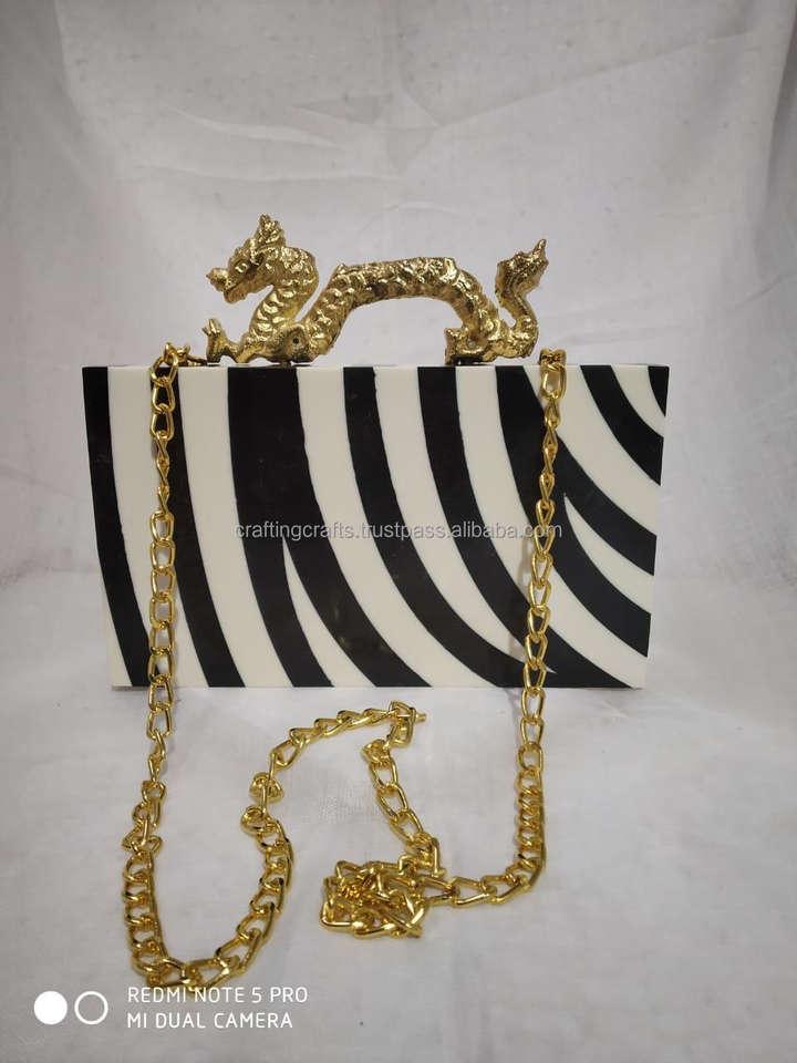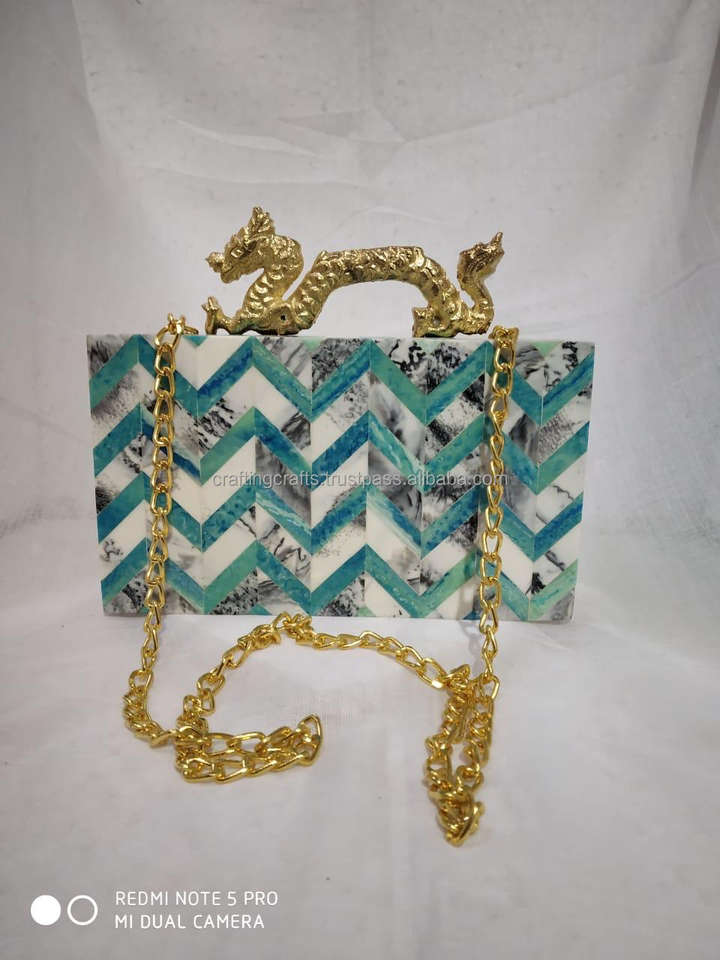 High Quality Emerald Green Ladies Evening Party Resin Stone Pattern Clutch Bag with Chains from India for sale