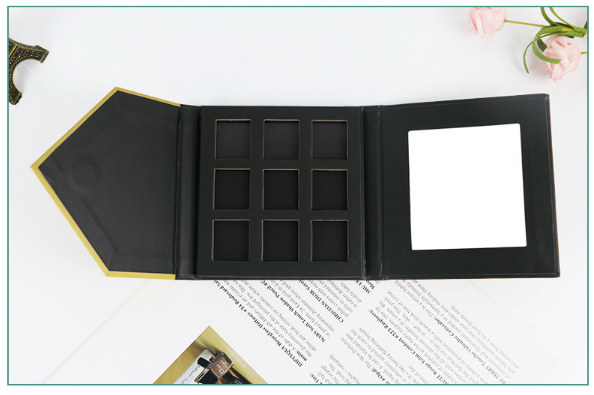 กล่องกระดาษแข็งคุณภาพสูงสำหรับใส่พาเลทอายแชโดว์แบบแม่เหล็กพร้อมกระจก แบบกำหนดเองได้