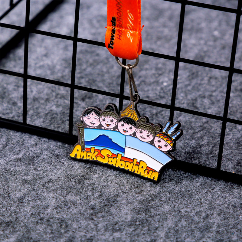 เหรียญรางวัลกีฬาแบบกำหนดเอง งานฝีมือเคลือบคุณภาพสูง พร้อมโลโก้การ์ตูนและริบบิ้น