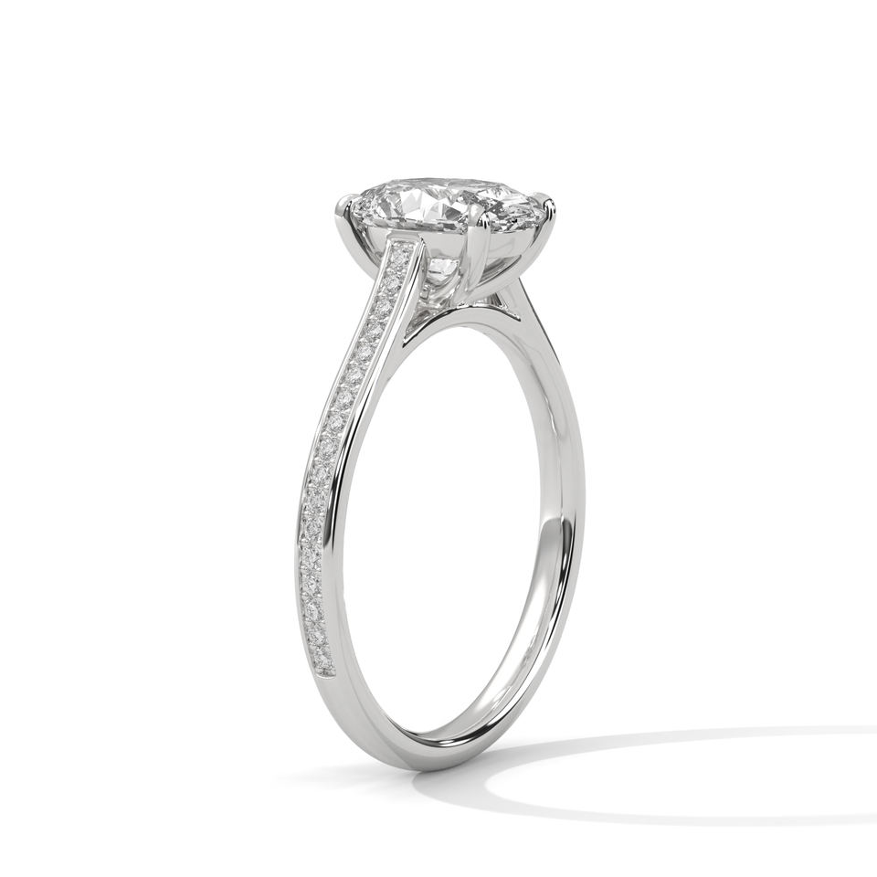 แหวนหมั้นคุณภาพสูง ประดับเพชรทรงรีแบบฝังหนามเตย เพชรเพาะเลี้ยงในห้องปฏิบัติการ ตัวเรือนทองคำขาว 14K เครื่องประดับชั้นดี