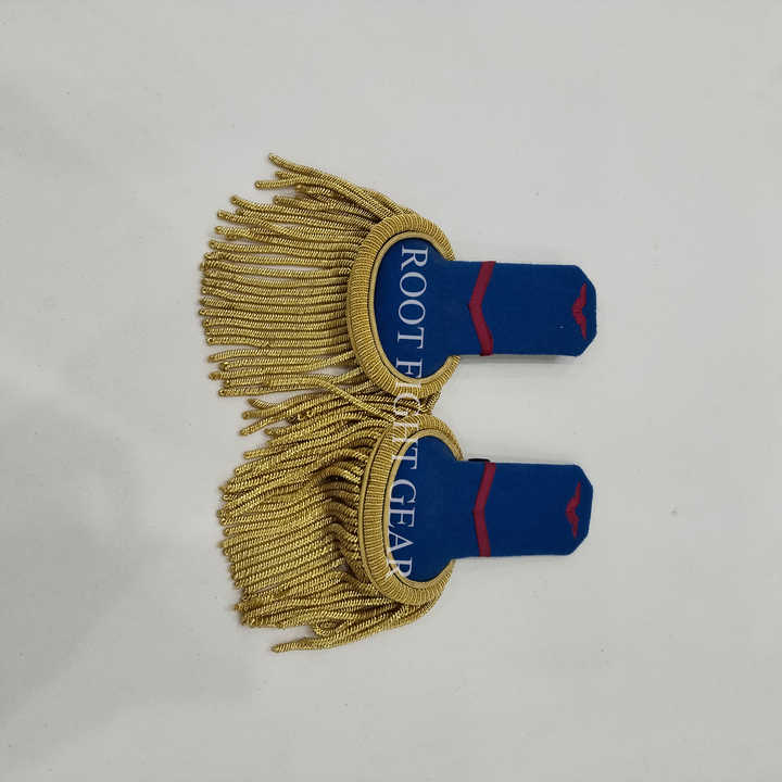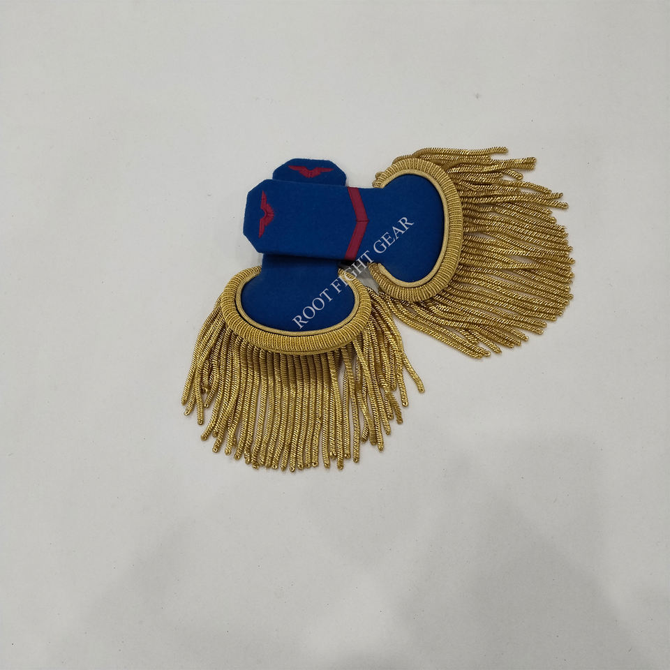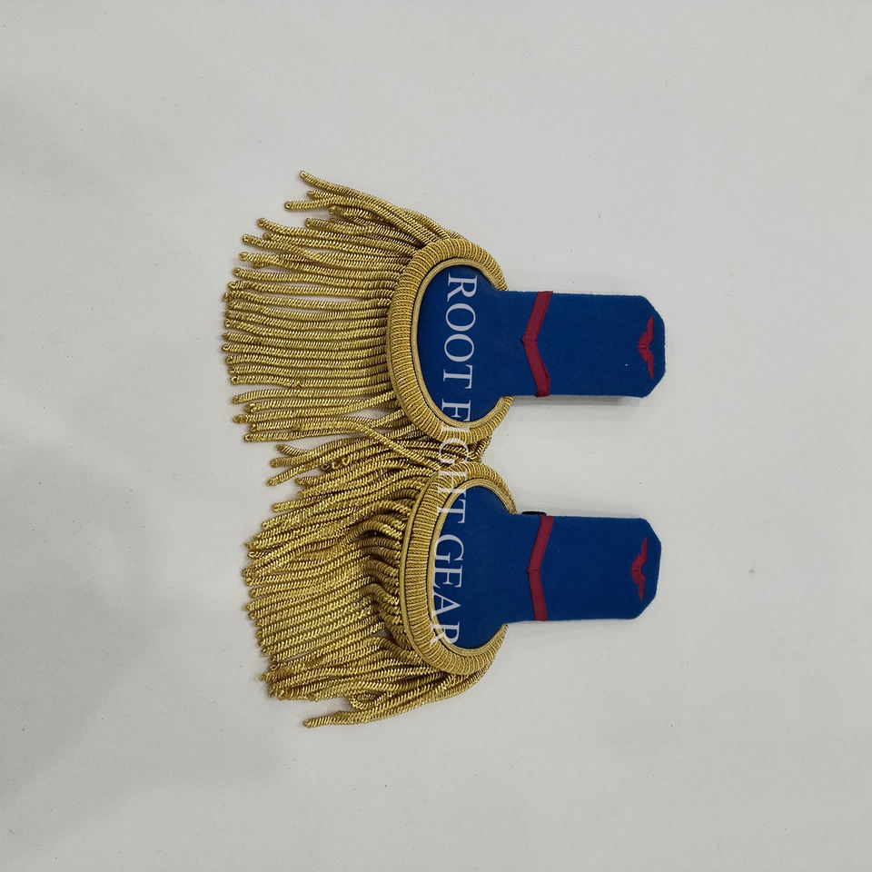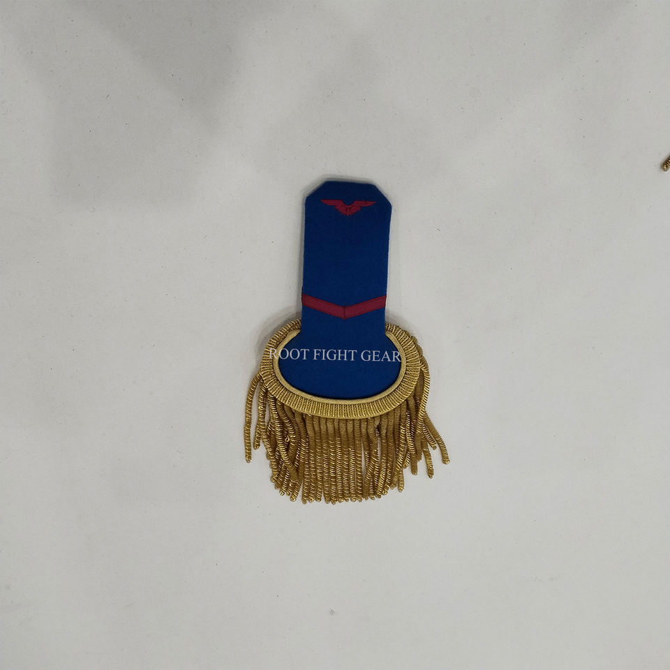 อีโบลูปต์ปักลายคุณภาพสูงสำหรับเครื่องแบบ ระดับยศบนไหล่ แผ่นปักไหล่แข็งพร้อมชายครุยสีทอง สามารถปรับแต่งได้