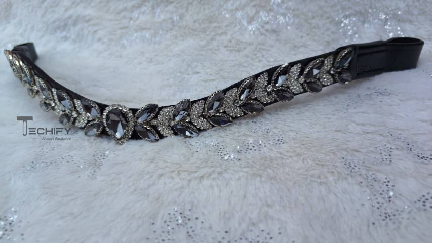 หนังม้าแท้สำหรับขี่ม้าบราวน์คุณภาพสูงมีโซ่ประดับคริสตัลสายคาดคิ้วหลายสี