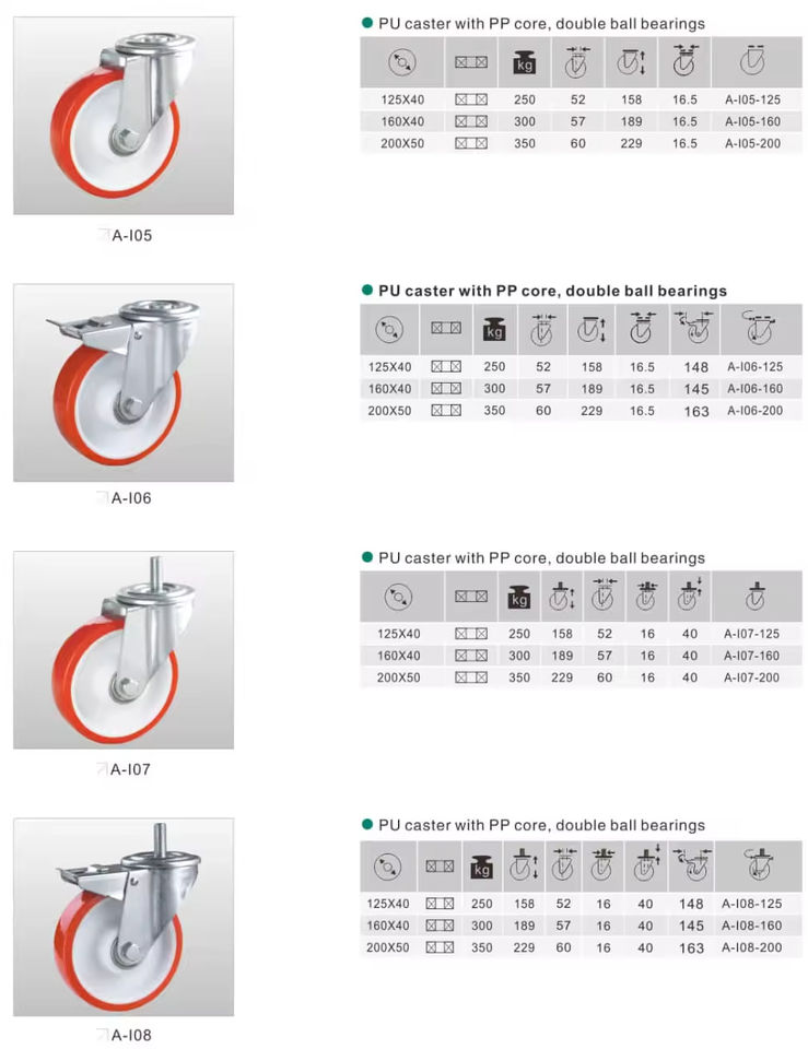 PU caster with PP core double ball bearingsหมายเลขรุ่น
