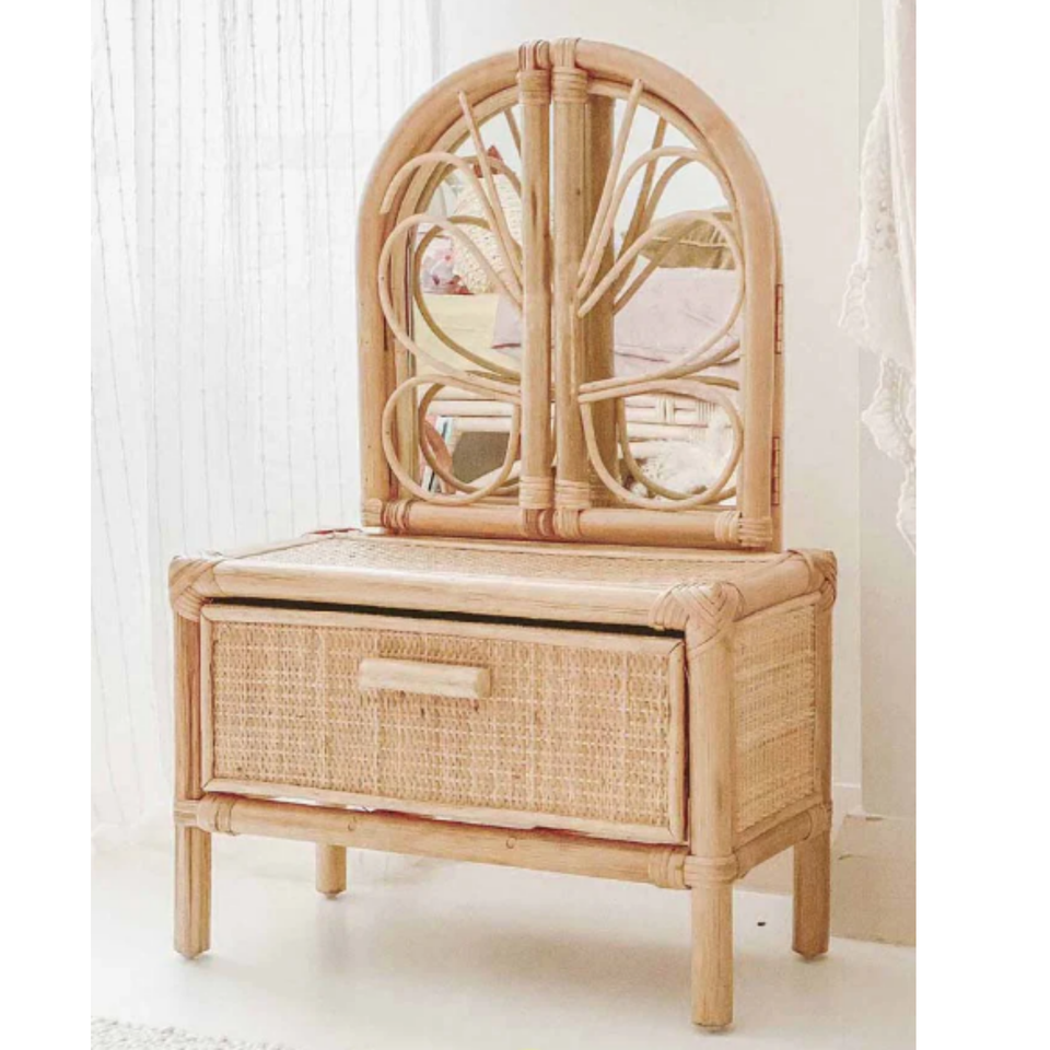โต๊ะเครื่องแป้งหวายสำหรับเด็ก