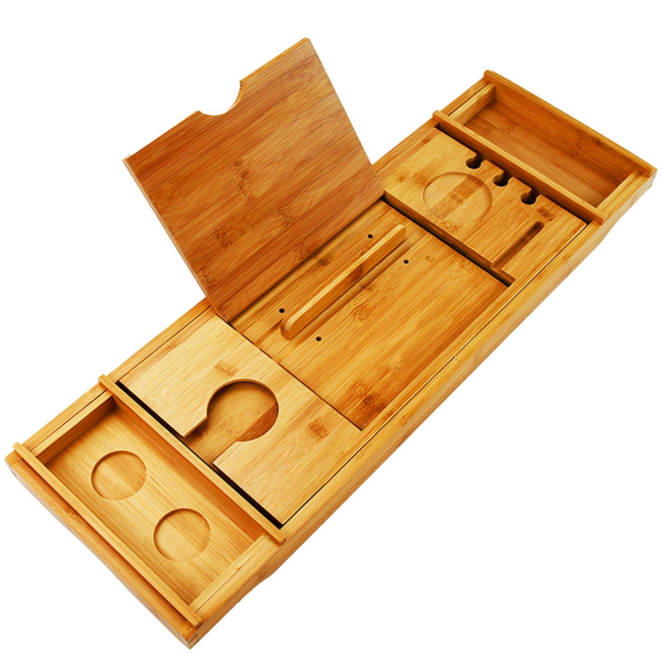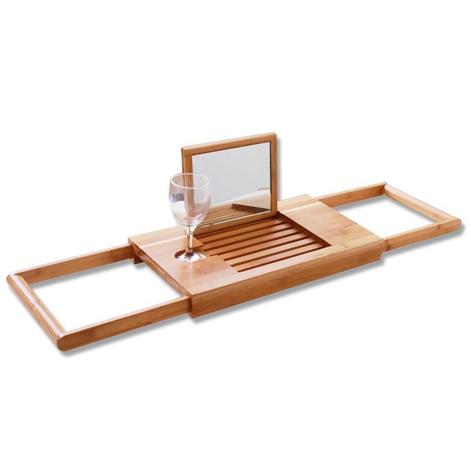ชื่อ:ถาดแคดดี้อ่างอาบน้ำไม้ไผ่พร้อมที่วางแก้ว