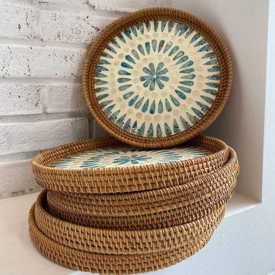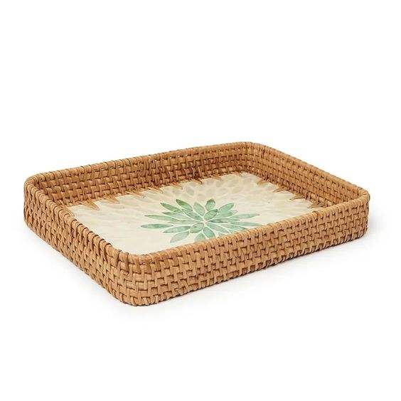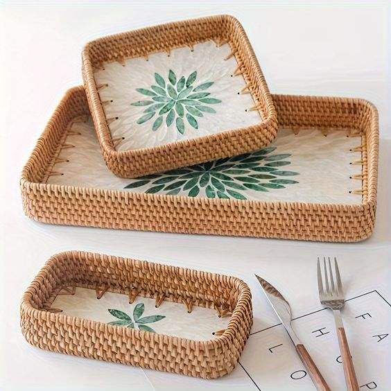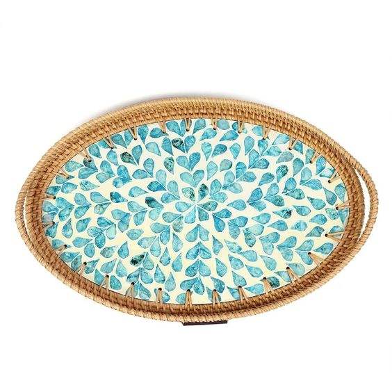 ถาดรองสำหรับตกแต่งทำมือทำจากวัสดุทำจากไม้ถาดสำหรับเสิร์ฟพร้อมจี้มุกธรรมชาติที่สวยงาม