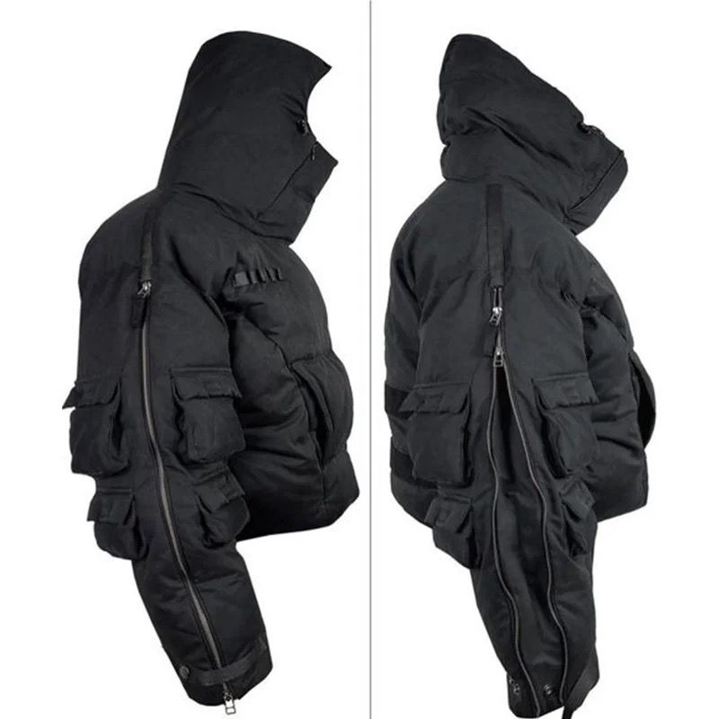 เสื้อโค้ทขนห่านสำหรับผู้ชายเสื้อแจ็คเก็ตขนห่านมีหลายกระเป๋าสีดำน้ำหนักเบาออกแบบโลโก้ได้ตามต้องการสำหรับฤดูหนาว