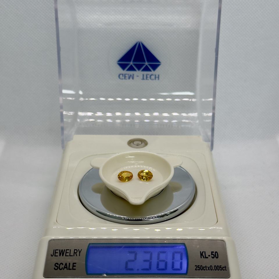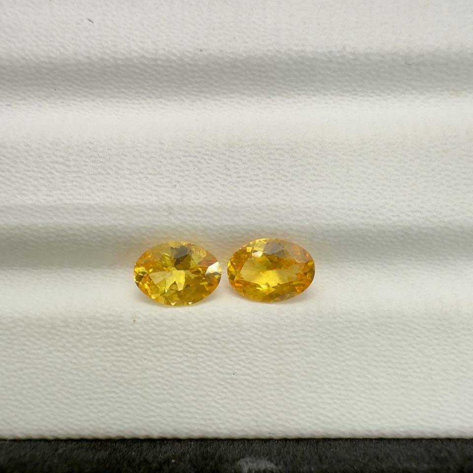 พลอยแซฟไฟร์สีเหลืองธรรมชาติคุณภาพสูง รูปทรงวงรี คู่ น้ำหนัก 2.36 กะรัต ราคาขายส่ง LK ผ่านการอบความร้อนแล้ว