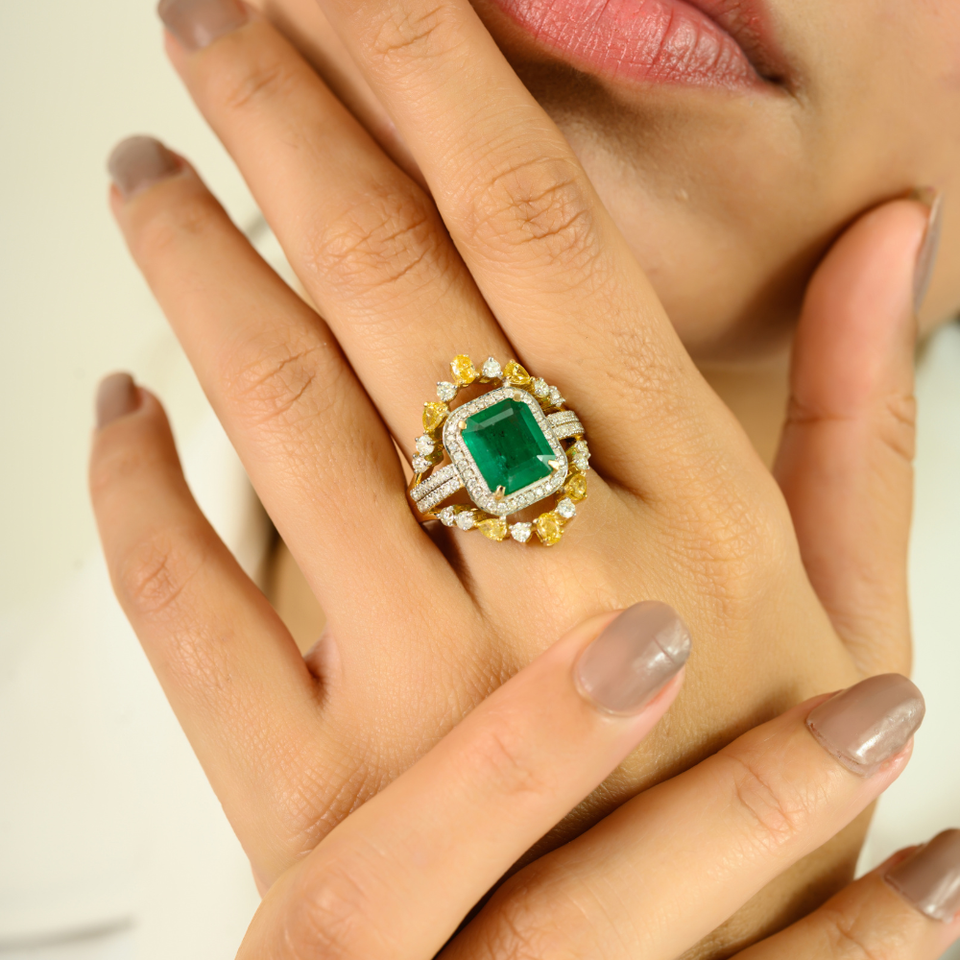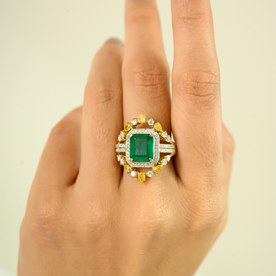 แหวนค็อกเทลสีเหลืองทอง14K สีเหลืองมรกตและสีเหลืองสีขาวสำหรับงานแต่งงานเครื่องประดับชั้นดีตามสั่งจากโรงงาน