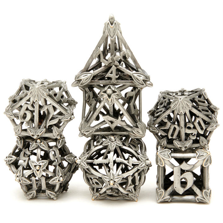 ชุดลูกเต๋าโลหะ DND 7ชิ้น D20ลูกเต๋ากลวงออกเหมาะสำหรับ D & D Dragon และ Dungeon RPG DICE g