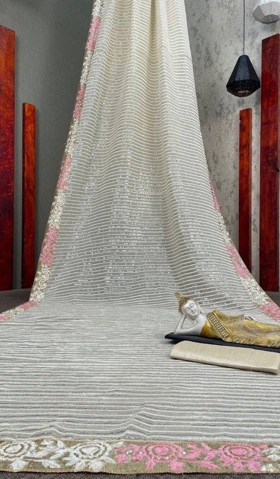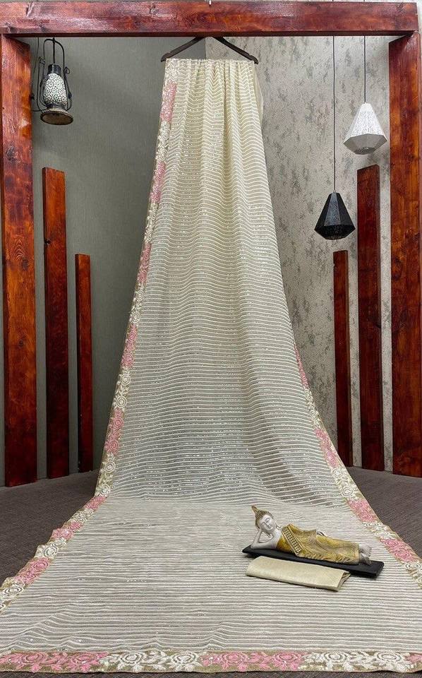 ผ้าส่าหรีสำหรับผู้หญิง งานปักคุณภาพสูง ราคาโรงงาน ดีไซน์ลายปักและขอบสวยงาม เหมาะสำหรับงานปาร์ตี้และงานแต่งงาน ราคาดีที่สุดจากอินเดีย