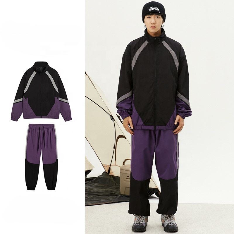 High Quality Factory Wholesale Custom Logo Printing Essential 2-Tone Stripped Zipper Jacket Drawstring Joggers Tracksuit for Men