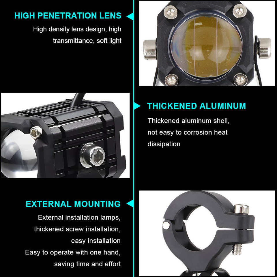 ไฟสปอร์ตไลท์มอเตอร์ไซค์ LED คุณภาพสูงจากโรงงาน ขายส่ง 12W 4000lm อะลูมิเนียม ไฟหน้าแบบสโตรบ 12V