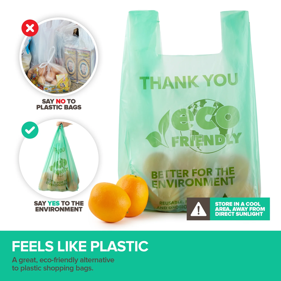 ถุงใส่เสื้อยืดพลาสติกสำหรับร้านขายของชำย่อยสลายได้ถุงขยะ