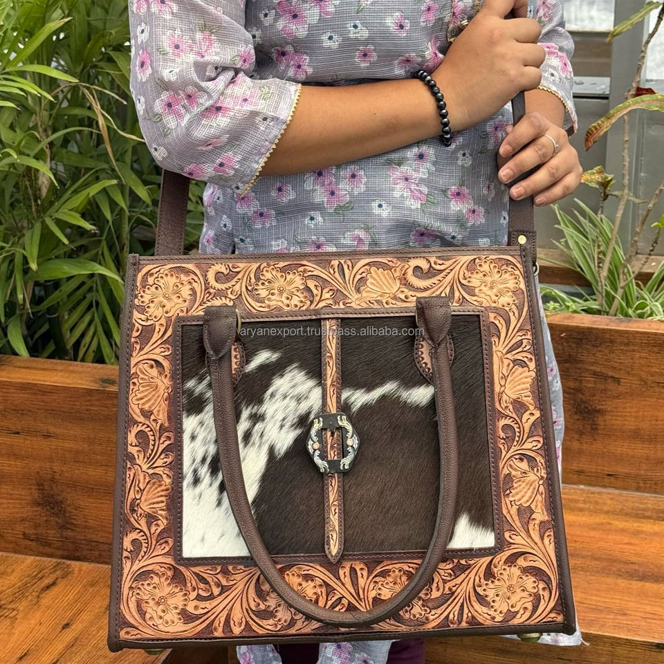Product Name:Hand Tooled Cowhide Leather Tote Bag
