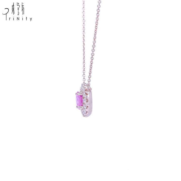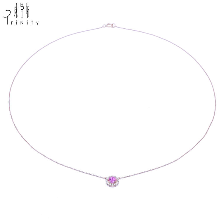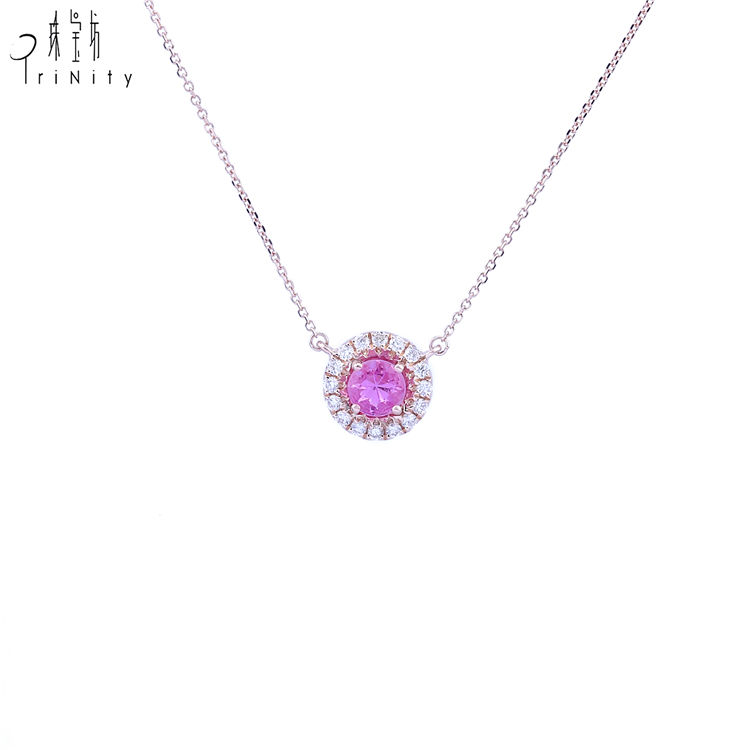 ที่มีคุณภาพสูงแฟนซีเครื่องประดับอัญมณีประณีตจริง18พันกุหลาบเพชรทองและสีชมพูไพลินจี้สร้อยคอสำหรับผู้หญิง