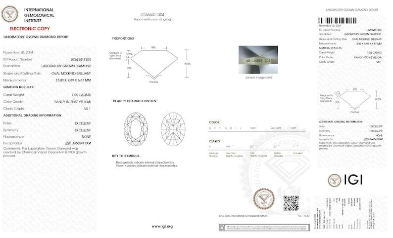 เพชรทรงรี6กะรัตสีเหลืองเข้มแฟนซีปลูกในห้องปฏิบัติการได้รับการรับรอง
