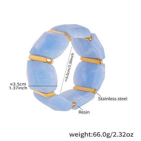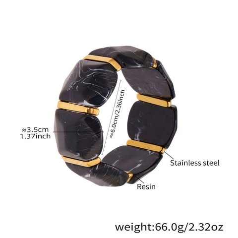 กำไลแฟชั่นคุณภาพสูง เรซิ่นธรรมชาติ รูปทรงเรขาคณิต ไม่สมมาตร ยืดหยุ่น ชุบ PVD ทอง 18K แบบโอเวอร์ไซส์