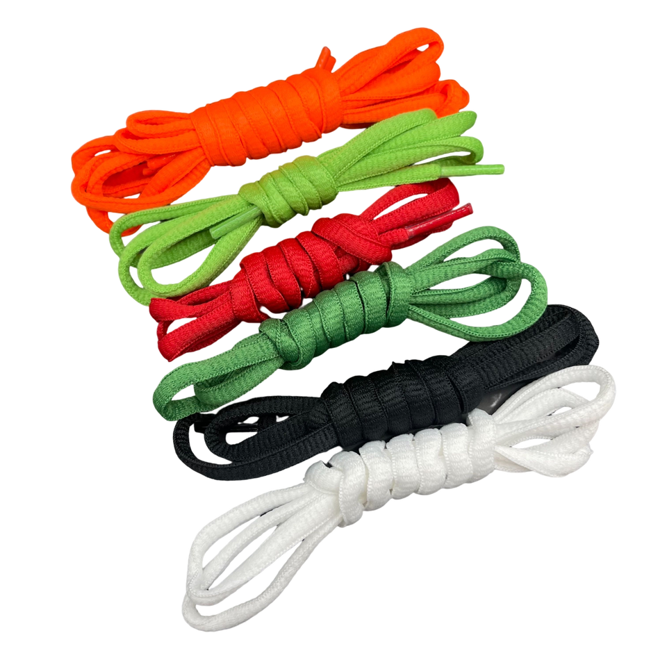 เชือกผูกรองเท้าโพลีเอสเตอร์ทรงครึ่งวงกลมคุณภาพสูง ดีไซน์ทันสมัย พร้อมปลายพลาสติก ความยาว 120 ซม. สีตามสั่ง TW