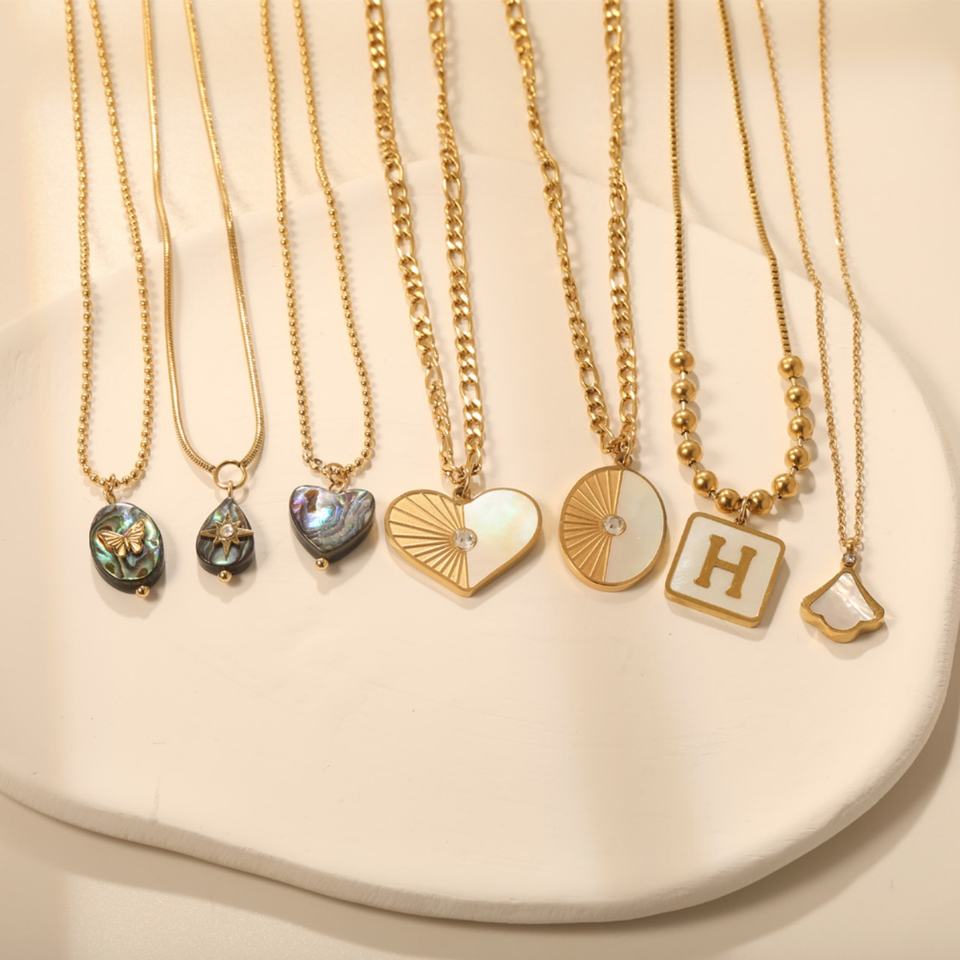 เครื่องประดับแฟชั่นคุณภาพสูง สร้อยคอจี้รูปทรงสี่เหลี่ยมประดับตัวอักษร ผีเสื้อ ซิร์คอน ดาว และเปลือกหอยอะบาโลน ชุบทอง 18k บนสแตนเลสสตีล