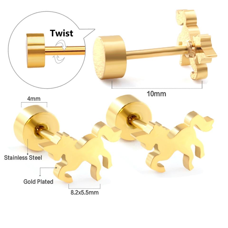 เครื่องประดับแฟชั่นคุณภาพสูงสำหรับผู้หญิง ต่างหูแบบเกลียวสแตนเลสสตีลรูปม้า สไตล์โรแมนติก ขายส่ง