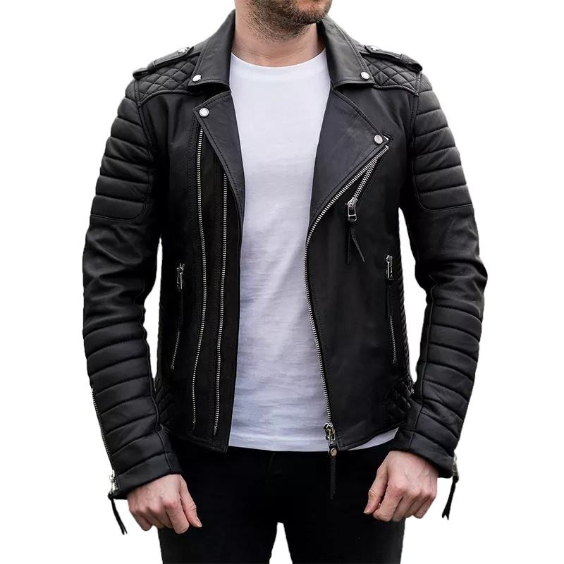 แจ็คเก็ตบอมเบอร์หนังแท้คุณภาพสูงสำหรับผู้ชาย กันน้ำ ระบายอากาศได้ดี สีสันปรับแต่งได้ สไตล์นักขี่มอเตอร์ไซค์ HI