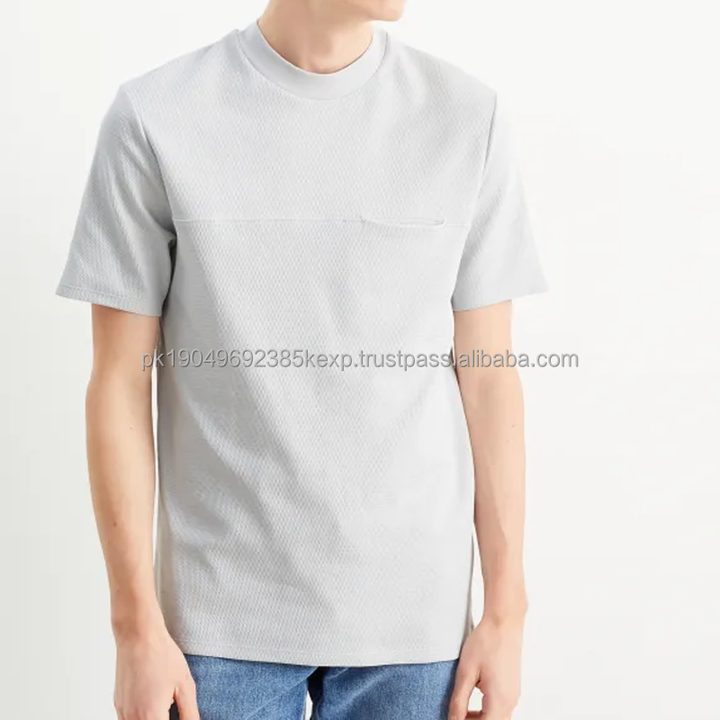 เสื้อยืดคอกลมผู้ชายแฟชั่นคุณภาพสูง มีกระเป๋า เสื้อยืดโอเวอร์ไซส์เนื้อหนา คอเต่า