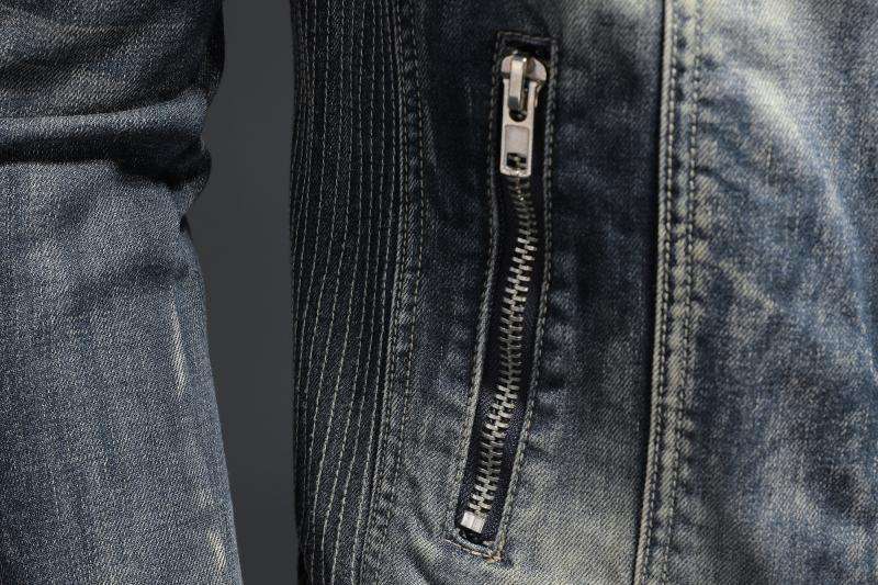 แจ็กเก็ตยีนส์มีซิปสำหรับผู้ชายแจ็กเก็ตผ้าเดนิมแบบวินเทจเทรนด์แฟชั่นมีปก