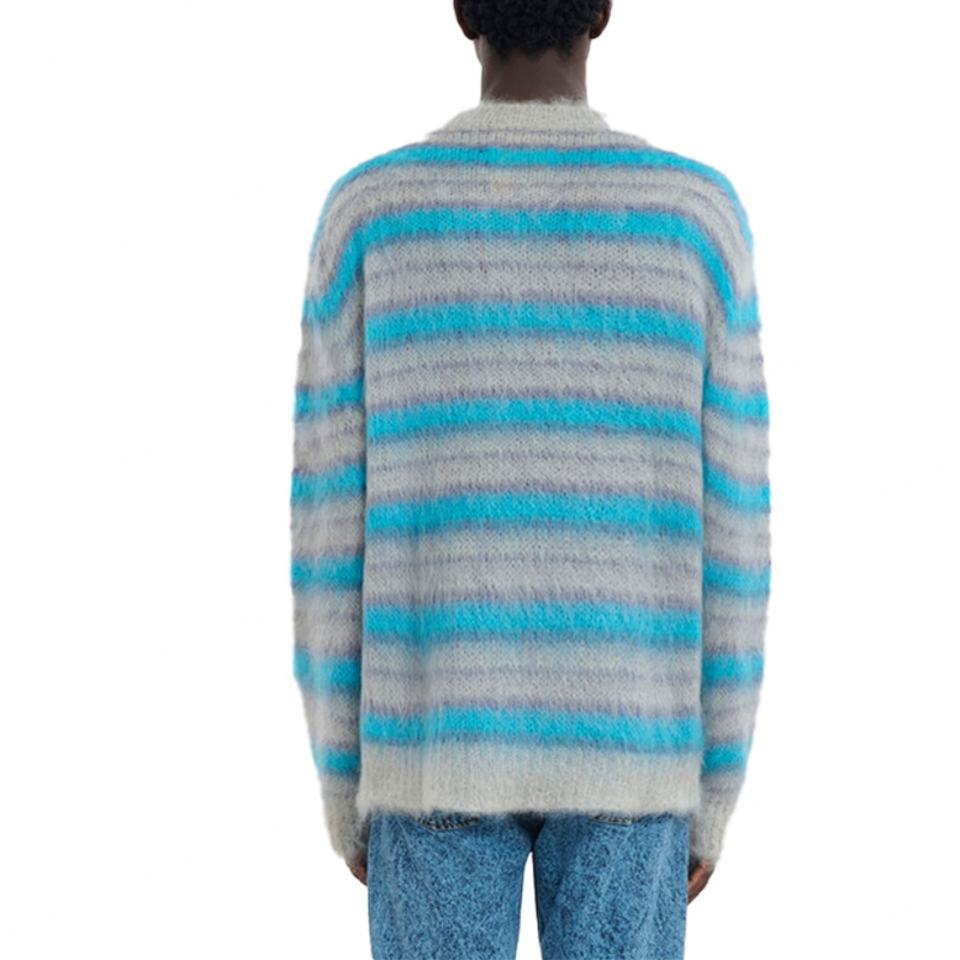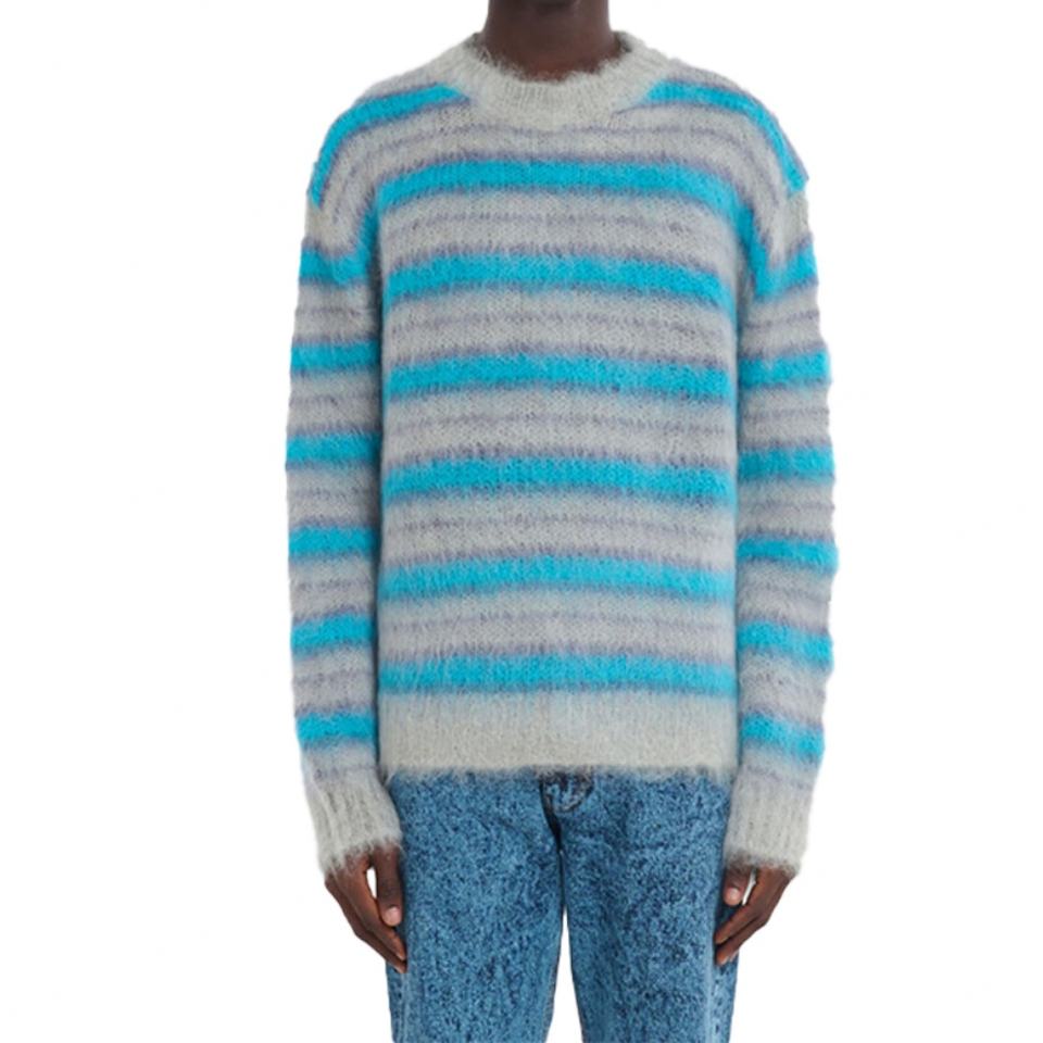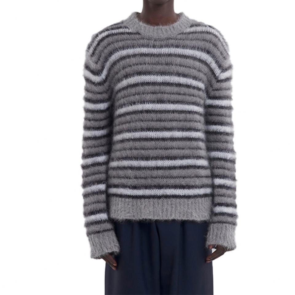 เสื้อสเวตเตอร์ไหมพรมลายทางสีตัดกันแฟชั่นคุณภาพสูงสำหรับผู้ชายฤดูหนาว ดีไซน์เนอร์ แบรนด์ดัง สไตล์ลำลอง