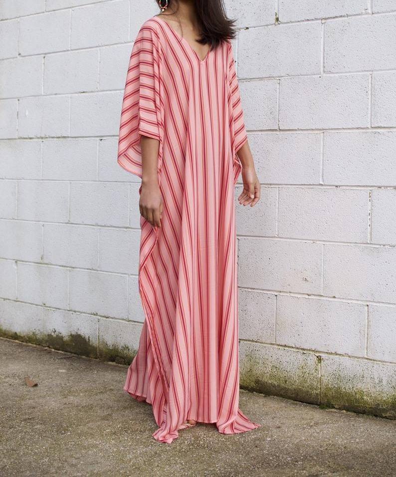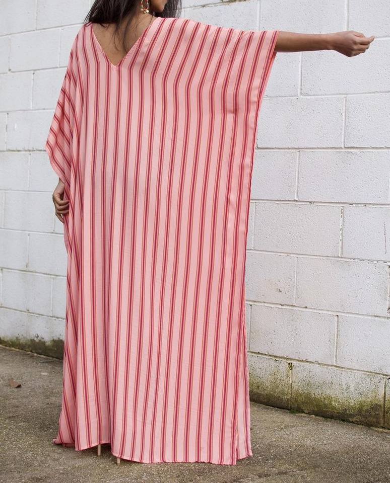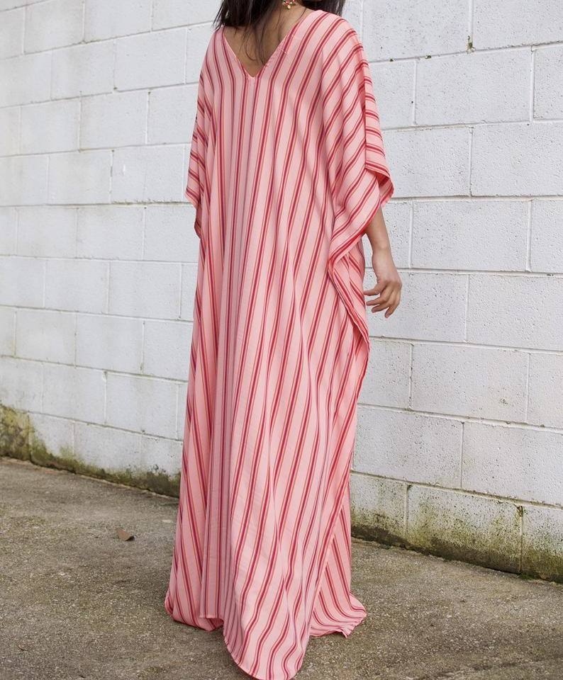 เสื้อผ้าแฟชั่นชุดเดินชายหาดสำหรับผู้หญิง,ชุดเดรสคาฟตานแขนสามส่วนมัดย้อม